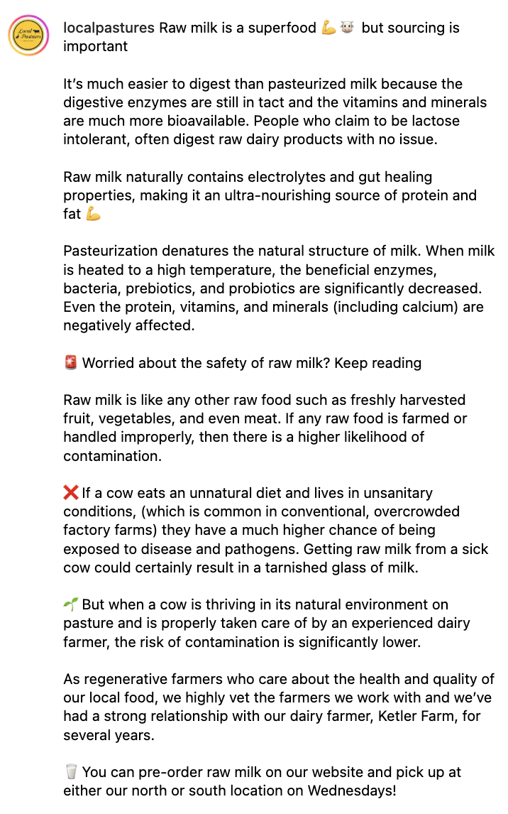 As the part-time social media manager for Austin’s only 100% Farmer-owned brick and mortar, my goal is to educate our community on the importance of regenerative agriculture, animal-based nutrition, and the Central Texas food economy.